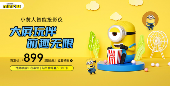 小黄人投影仪预售开启:全封闭式光机,899元,颜值逆天