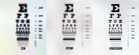 直接对照来看,Butterscotch 的显示清楚度已经远超早年的 Oculus Rift和当前在售机型 Quest 2: