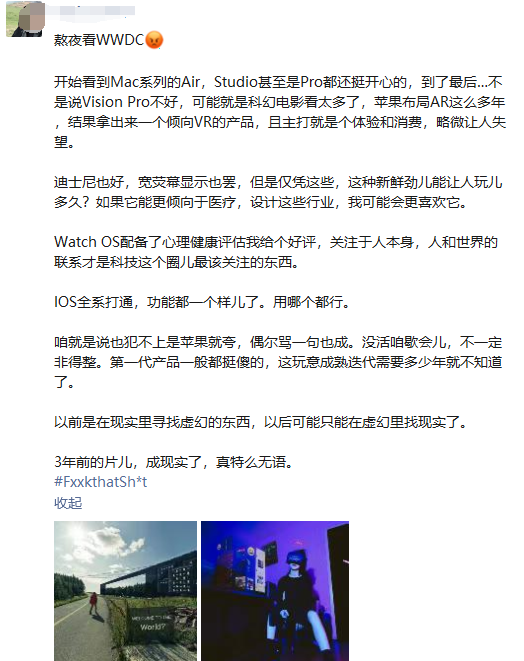 顺便说一下,国内有不少媒体都被邀请去了圣何塞,国内的科技内容平台上也有大量的内容,假如看到哪一家放出了VisionPro真机试用内容并且做了评介,真的值得好好参考一下,到时候618哪个电商平台再给一个百亿补贴价,咱不就率先 寰球99.9%的果粉儿了么 。