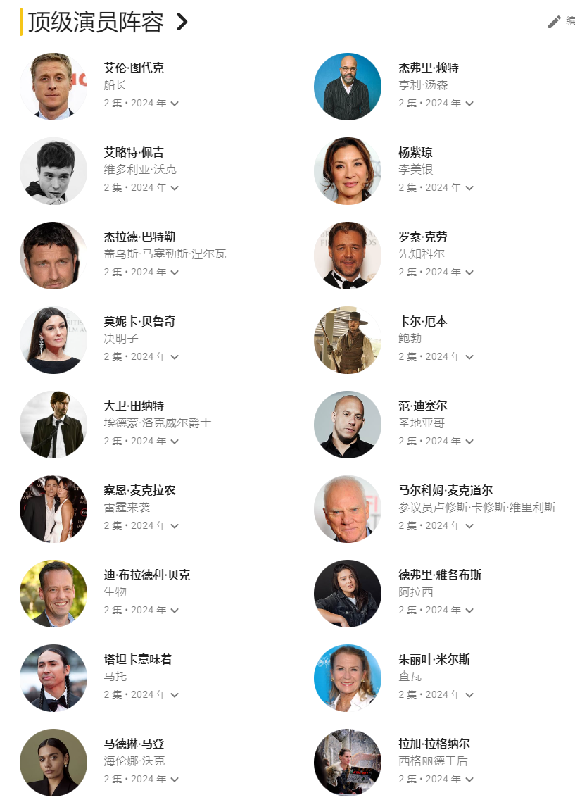 IT之家 留神到,该动画剧集的配音演员阵容非常奢华,包含杨紫琼、袁文忠、范?迪塞尔、艾伦?图代克、杰弗里?赖特、艾略特?佩吉(原名艾伦?佩姬)、罗素?克劳、大卫?田纳特、莫妮卡?贝鲁奇、卡尔?厄本等人倾情献声 。