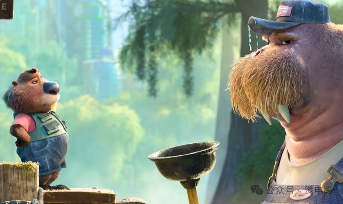 又如,狸宝正式出场后第一次咬铅笔,第二次啃拖把,我们会 认为嚼木头是人物自带的喜剧设定 。但在尼克越狱无门时,狸宝却从嘴里拿出了监狱的钥匙,原来啃木头还有“牙雕” 性能 。这种三翻四抖的节奏,这种 意料之外情理之中的设置,让观影过程处处趣味 。