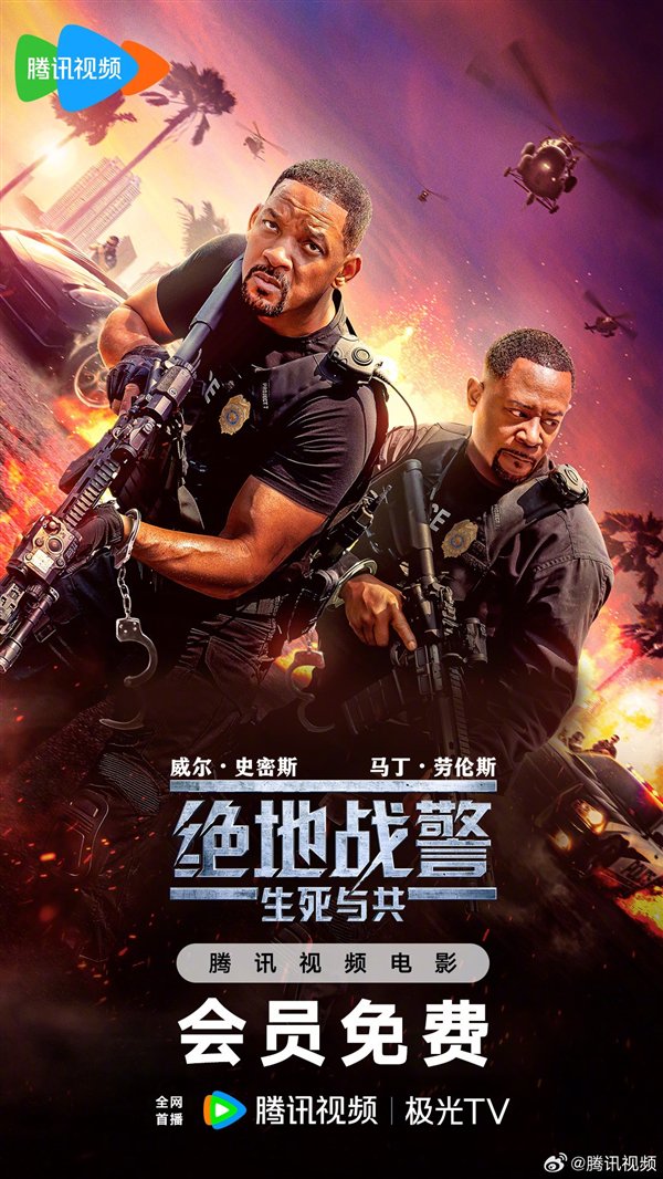 2月26日 信息,据腾讯视频官微介绍,“史皇”威尔·史密斯新片《绝地战警4:生死与共》今日正式上线网播,会员 能够免费看 。
