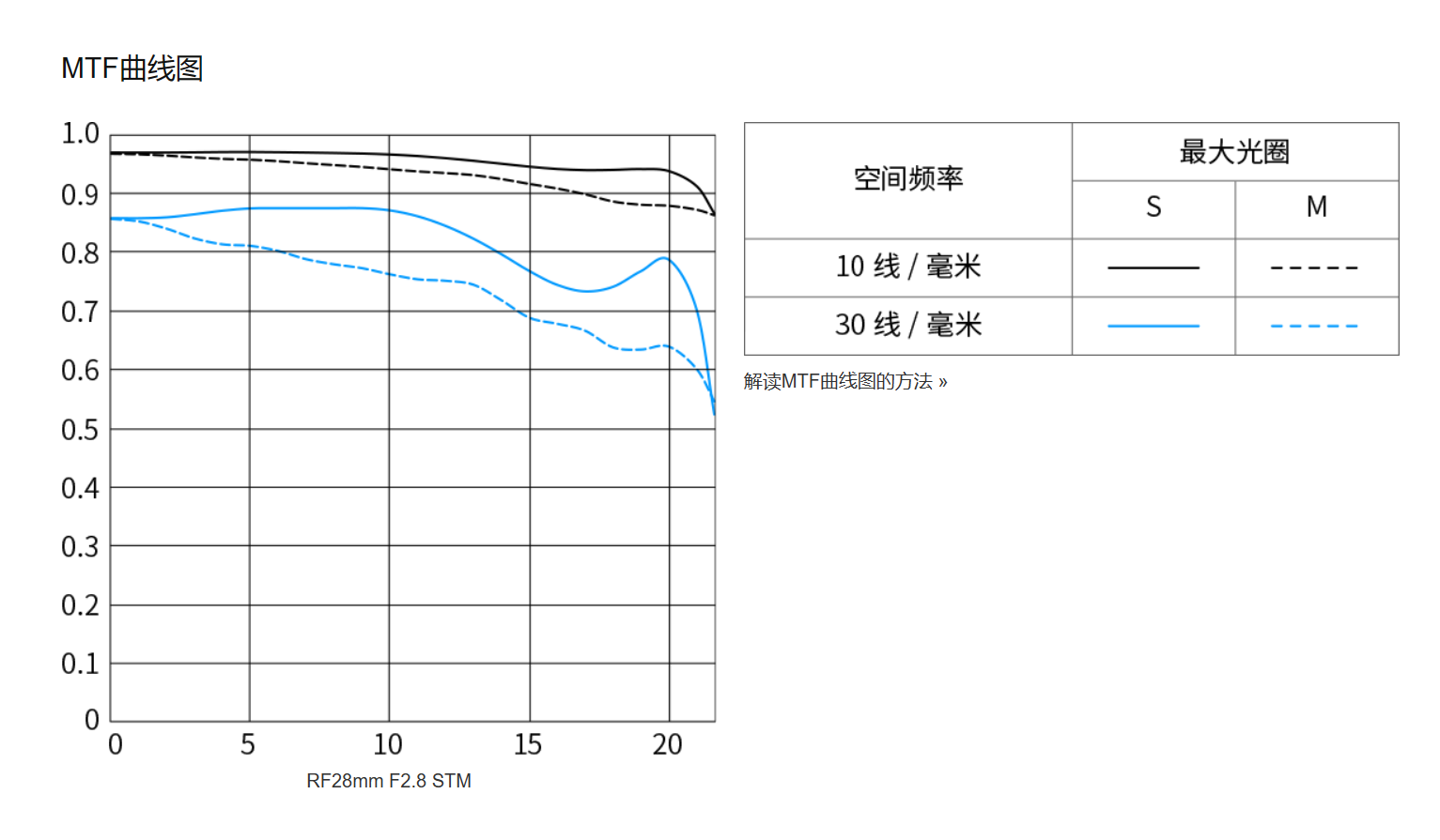 佳能 RF28mm F2.8 STM 镜头的市场 提议零报价为 2199 元,将于 2023 年 7 月上旬开售,IT之家附 MTF 曲线图: