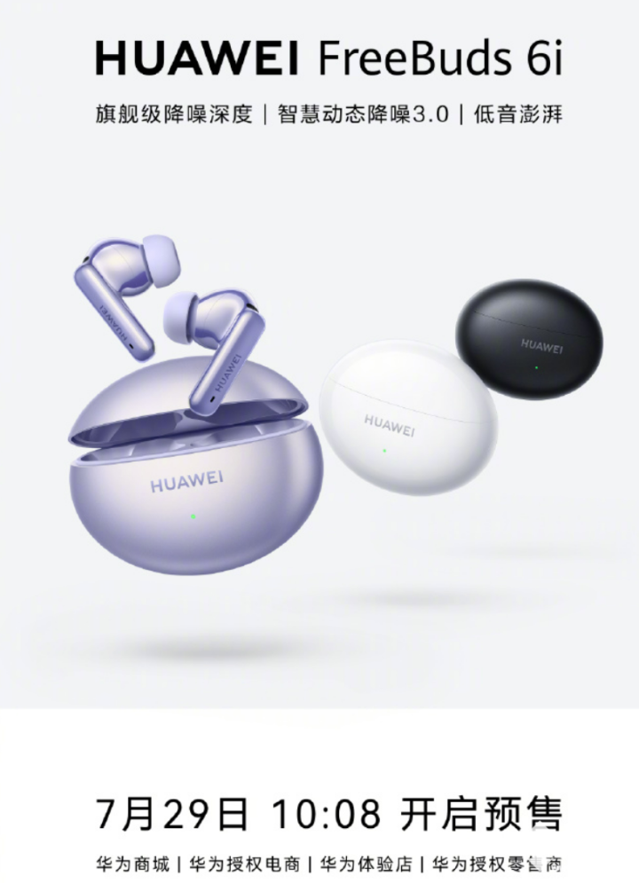 7月29号 信息,华为终端 宣告新款TWS耳机——华为FreeBuds 6i今日开启预售,在7月29日至8月6日预售期间可享100元优惠 。