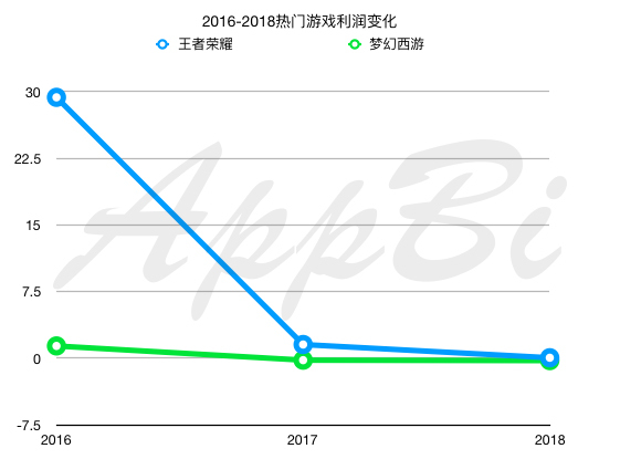 目前, 国内游戏市场最大的霸主为腾讯和网易。 2016 年, 《王者荣耀》一度达到巅峰。 利润增长高达29%。 但是, 近几年, 随着政策限制、同款游戏频频爆出, 《王者荣耀》的热度和用户购买度均有所下滑。 与之相比, 网易的《梦幻西游》呈现负增长, 利润大不如前。