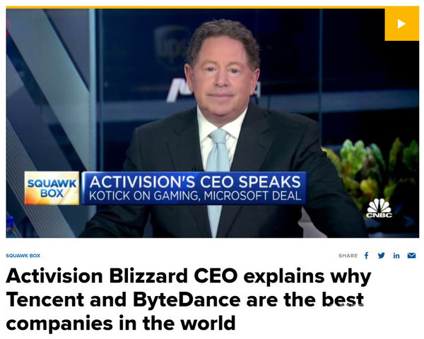 暴雪CEO说腾讯和字节是最好的公司