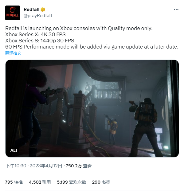 4 月 13 日 信息,游戏开发商 Arkane Austin 本周三公布推文,明确 实用于 Xbox 游戏主机的《红霞岛》(Redfall)上线初期不 支撑 60FPS 的性能模式 。