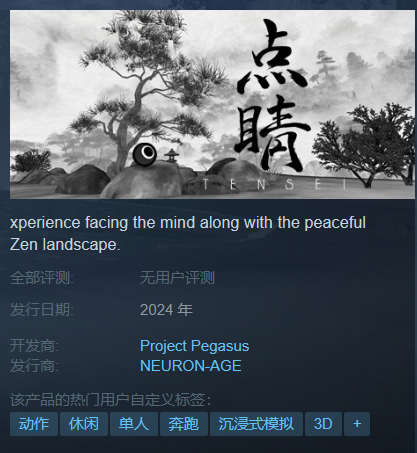 9 月 14 日 信息,Steam 商店上架了一款水墨风禅意动作游戏《点睛》, 方案 2024 年发售 。