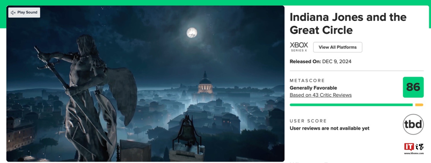 12 月 6 日 信息,B社《夺宝奇兵:古老之圈 (Indiana Jones and the Great Circle)》将于12月9日登陆PC、Xbox Series X|S 等平台,购买高级版的消费者现已 能够 领先体验游戏,本作 寰球媒体评分现已解禁 。