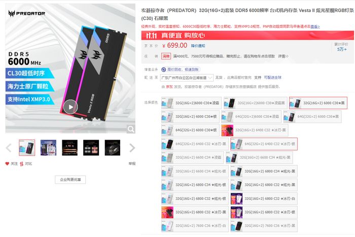 双11买电竞高颜值DDR5炫彩RGB内存,就选宏碁掠夺者Vesta II炫光星舰 |