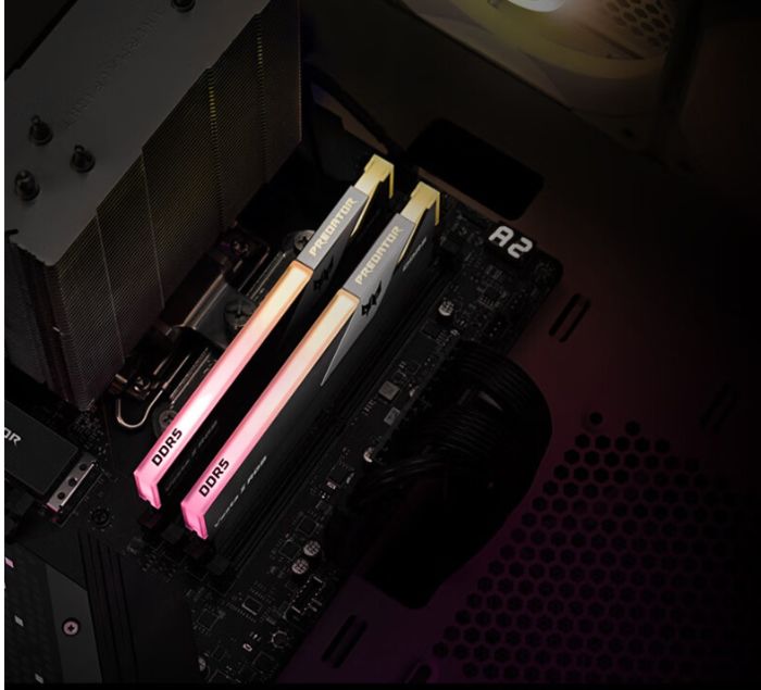 在海景房主机 风行的今日,好看的内存,相信没人会 回绝的 。宏碁掠夺者VestaII炫光星舰DDR5-6000内存身披帅气的散热装甲,黑色外加银色来 点缀, 充斥着科技感 。上方印有掠夺者Logo和DDR5标识,上方有RGB灯条, 支撑自定义神光同步 。