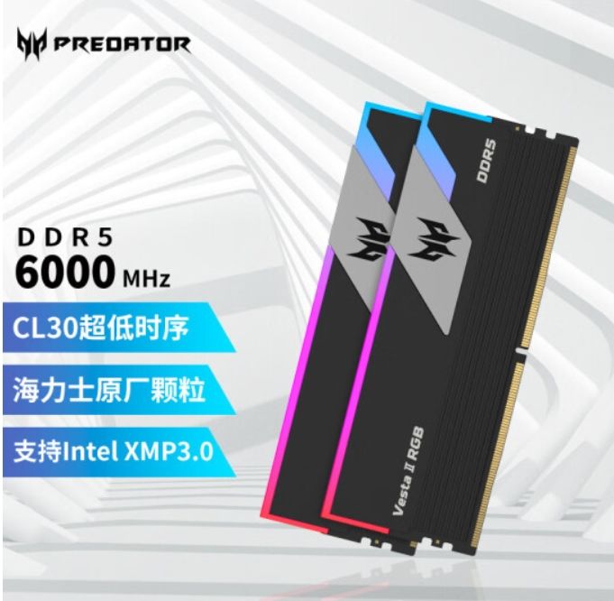 随着DDR5内存价格的 降落,新装机的小 搭档固然优先考量DDR5平台 。在双十一 降临之际,面对着让人 目迷五色的DDR5内存市场,想找一款性能强悍且性价比突出的DDR5内存?宏碁掠夺者VestaII炫光星舰DDR5-600016Gx2套装便是您的菜!