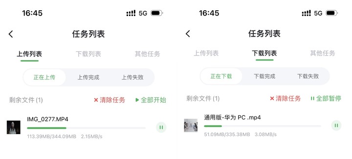 实测在广州电信 5G 手机网络的场景下,上传视频的速度可达 2.15MB/s,下载速度可达 3MB/s 。固然这取决于当时的移动 经营商信号等条件,也受限于家中宽带网络的带宽水平 。