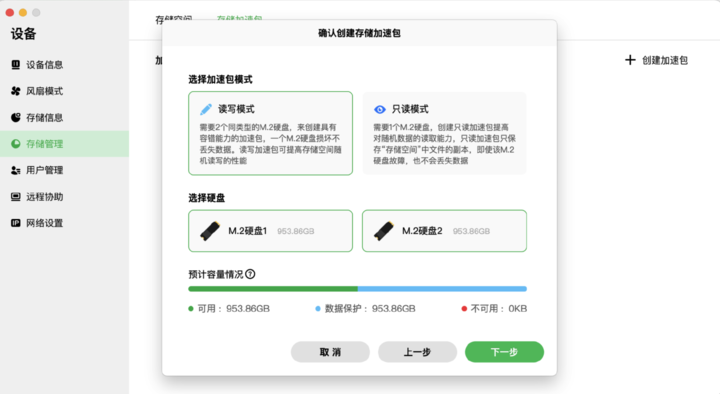 需求 留神的是,绿联的系统是 支撑 使用 SSD 来 创立「存储加快包」的,单个 M2 SSD 能够激活只读模式,假如想要读写均能加快的话,就需求插满两块 M2 SSD 了 。