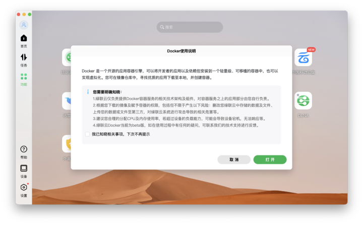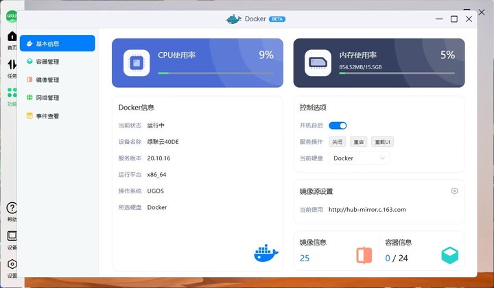 关于 Docker 的玩法这里就不再赘述了,原本我 使用 Docker 最重要的 目标也是为了搭建一个好用的影视墙,但随着「绿联云影院」的不停 晋级,自建影视墙的需求一下子就消逝了 。值得 夸奖的是,绿联云客户端里依旧为 Docker 提供了直观好看的图形化界面, DIY 的入门门槛依旧不算高 。