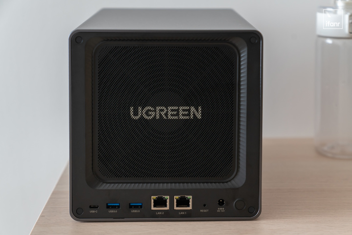 绿联 DX4600 的全部接口都 搁置在机身的 反面,从左到右包含了 USB-C × 1,USB-A 3.0 ×2,2.5GbE 网口×2,DC12V 电源接口 。 固然这里还分列着复位键和电源开机键 。双 2.5GbE 网口 支撑链路聚合为 5GbE, 能够进一步 打破带宽上限, 获得更高速的传输体验 。