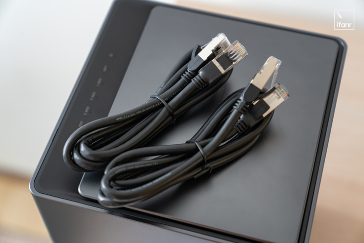 随包装装备的两条 CAT-6 网线,自然是给 反面的双 2.5G 网口而 预备的, 能够用于与路由器衔接 。