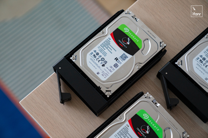既然是一款四盘位的 NAS,所以我们 预备了四块 4TB 的希捷酷狼 NAS 硬盘 。(这套硬盘 调度下来应该要比 NAS 本体贵了)