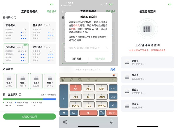 绿联 DX4600 依旧是搭载绿联自研的 UGOS 系统,主打的便是便捷易用的 特点,所以机内预装的系统其实没有太多复杂的配置步骤 。图形化的系统界面会一步步在移动端/电脑端上 疏导你 实现对硬盘的配置 。