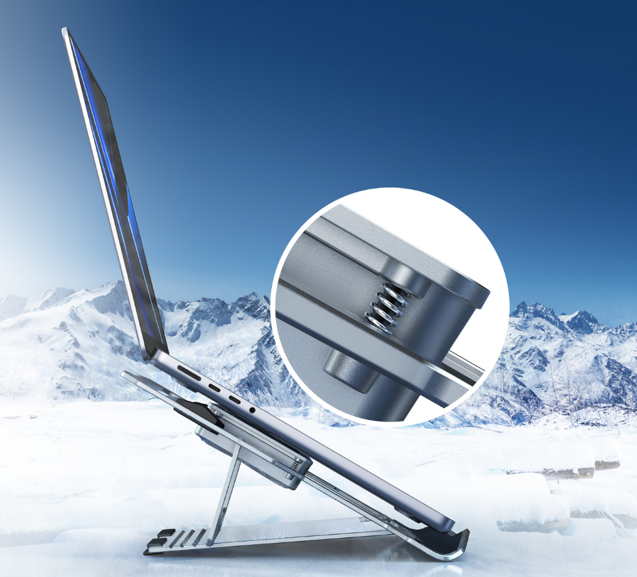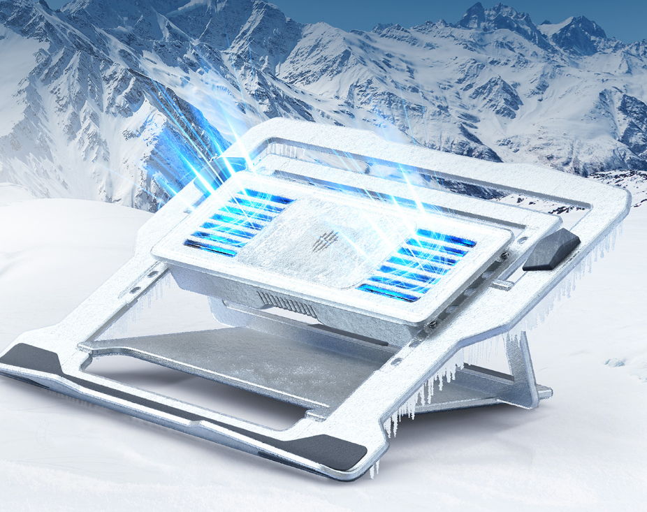 外观设计方面,红魔笔记本散热器配有 RGB 炫彩灯效,并采纳人体工学设计, 支撑 4 档位高度调节,久用不变形不晃动 。在产品的接触面上,红魔采纳了多个硅胶垫设计并添加了全铝合金支架,可借助四角可伸缩弹簧调整散热位置,散热 动机更好 。