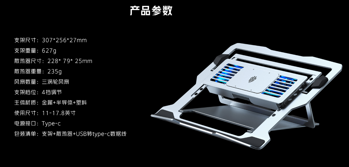 努比亚红魔笔记本散热器开售:内置三涡轮风扇,249 元 |