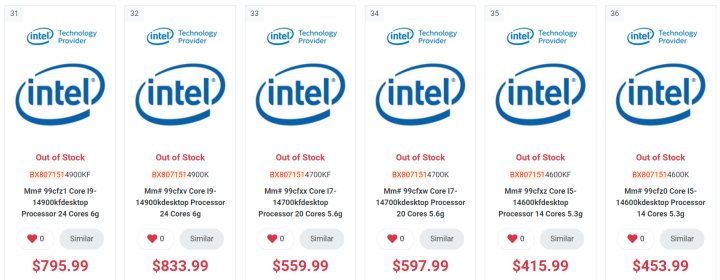 加拿大零售商PC Canada偷跑了14代酷睿 解决器,价格较13代酷睿 遍及了一些,幅度2-4%不等 。