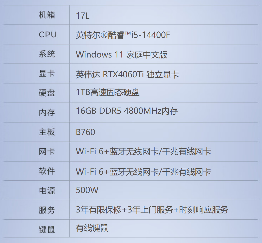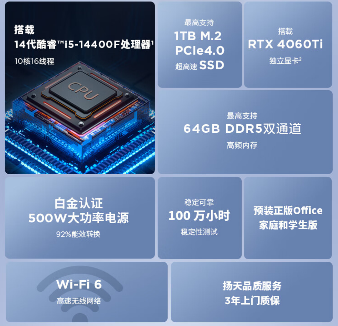 i5-14400F+RTX4060Ti:联想 T4900k 台式机 16+1TB 版 4996 元 6 期免息 |