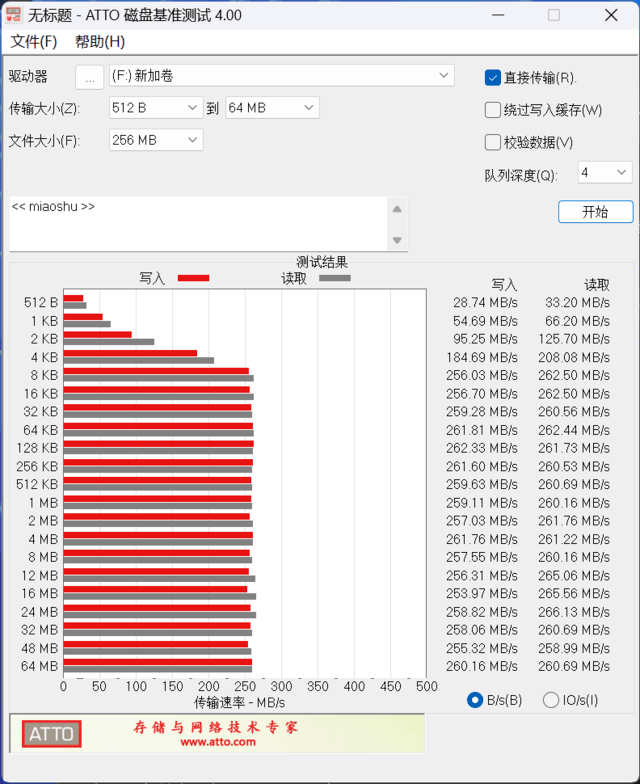 接下来通过ATTO磁盘基准测试来 测验希捷银河Exos X24对碎片文件的读写 威力 。