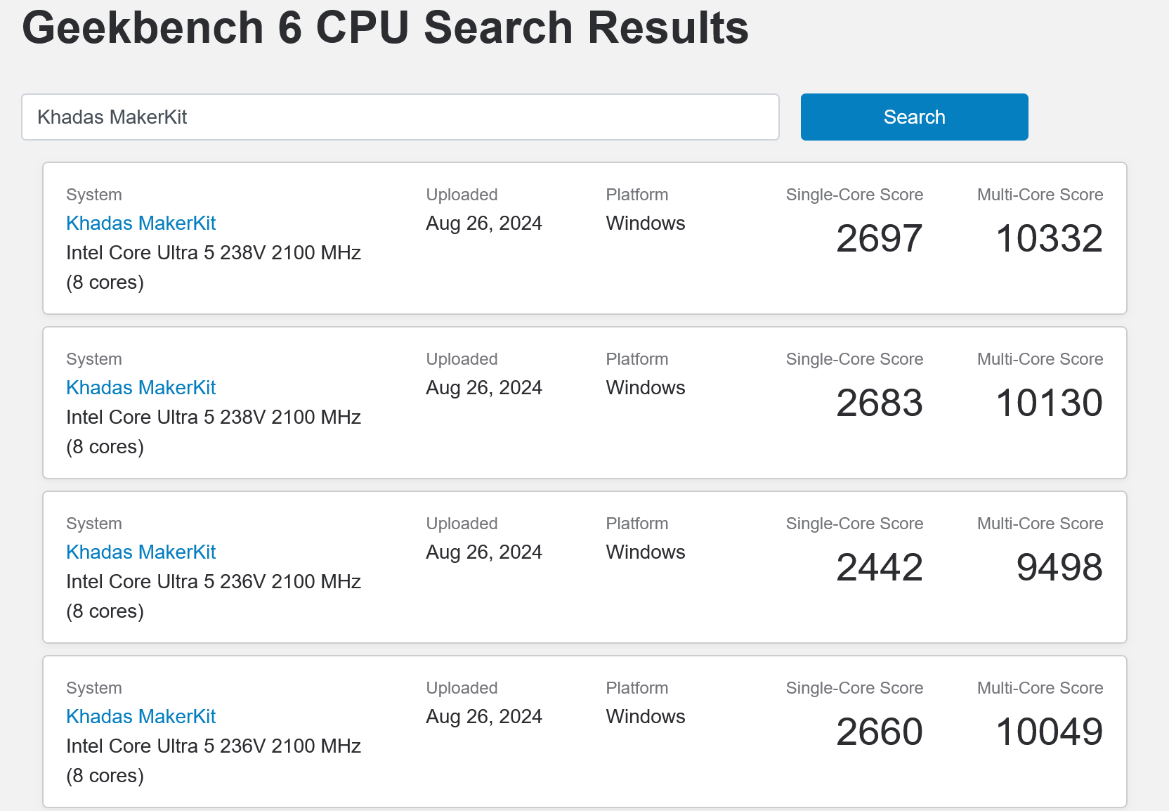 记录显示 Khadas 下代?Mind Maker Kit 有望搭载的 Lunar Lake 解决器 SKU 除此前报导中提到的 Ultra 7 268V 和 Ultra 5 228V 外,还包含 Ultra 5?238V 和 Ultra 5 236V 。