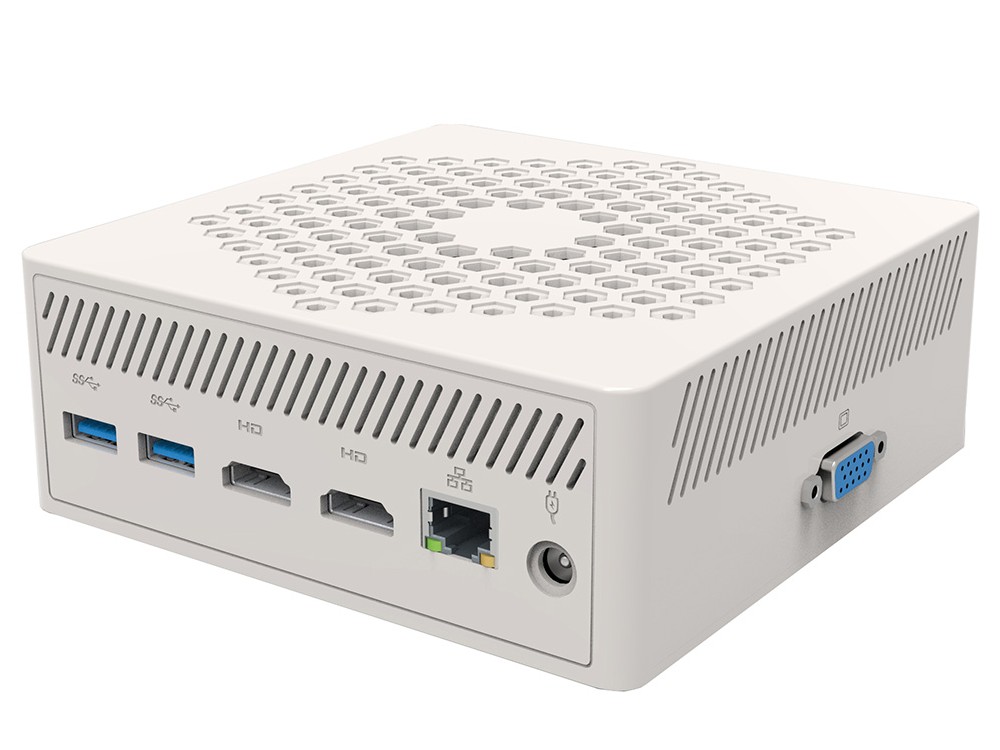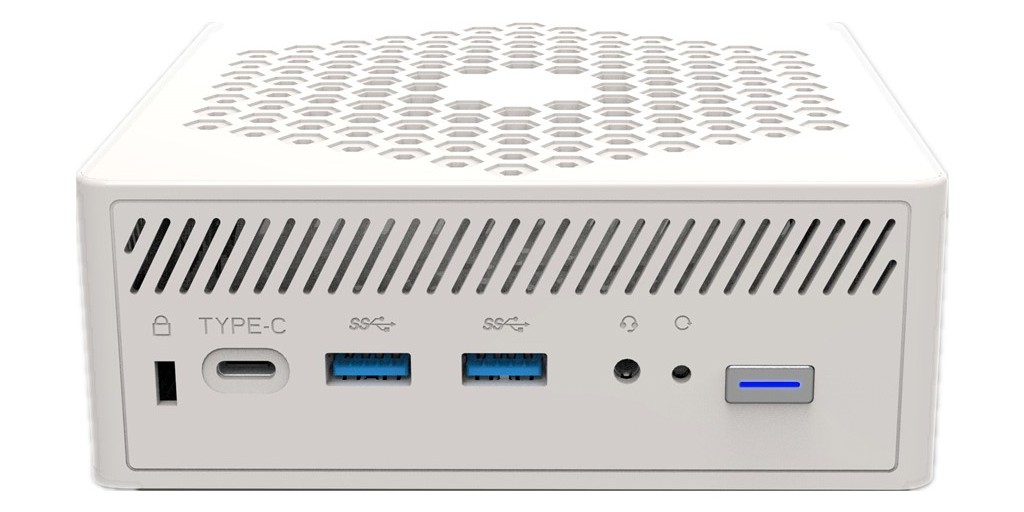 这款迷你主机的正面 占有 1 个 USB-C 5Gbps、2 个 USB-A 5Gbps、1 对 3.5mm 音频插孔和电源键、肯辛通 Kensington 安全锁孔; 反面则包括 2 个 USB-A 5Gbps、2 个 HDMI 2.0、1 个 1GbE RJ45 和 1 个 DC-in 供电口;侧面则提供了当前在迷你主机产品中已相当少见的 VGA 口 。