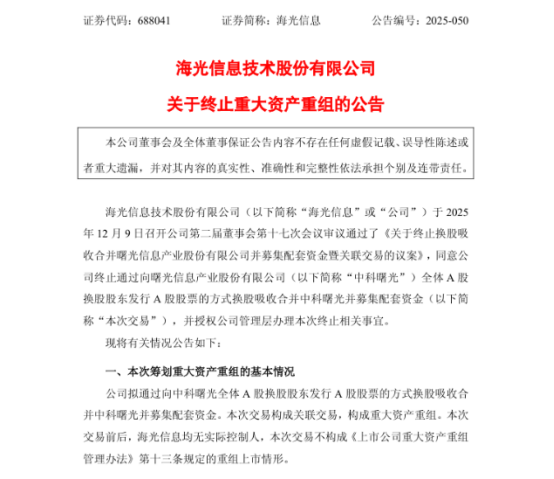 12月9日,海光信息技术股份有限公司(以下简称“海光信息”)与曙光信息产业股份有限公司(以下简称“中科曙光”)同步 宣告终止换股汲取合并及配套募资 方案 。该交易受“市场环境较筹备之初 产生较大 变迁”影响,最后因 施行条件不成熟而终止,双方 示意后续仍将 维持产业协同合作 。实际上, 固然海光信息与中科曙光都 直接或者直接与中国科学院计算所 有关,且两家公司在产业链上的协同效应较强,但是在两家公司 宣告 发展合并 方案之后和终止合并之前,两家公司的股价都浮现了大幅的上涨,均被行业看成人工智能时代的主要算力芯片和解决 方案提供商而影响了合并 。