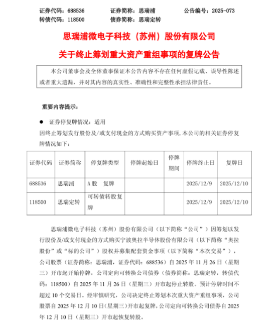 与上述交易 类似,在思瑞浦微电子科技(苏州)股份有限公司(以下简称“思瑞浦”)终止收购宁波奥拉半导体股份有限公司(以下简称“奥拉半导体”)的案例中,也隐隐 能够看到IPO重启带来的影响:2025年12月9日,思瑞浦 宣告终止以发行股份或 领取现金 模式收购奥拉股份86.12%股份 。思瑞浦作为 模仿芯片企业,原 方案通过收购国内时钟芯片领域内的领先企业奥拉半导体,从而打造更加 丰盛的产品组合,但经 商量后认为“ 施行重大资产重组的条件尚未 彻底成熟”,决定终止交易 。