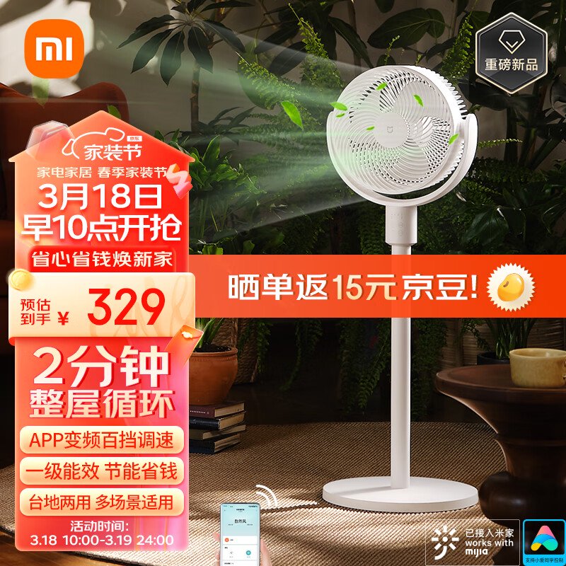 3 月 18 日 信息,此前在小米有品众筹的米家空气循环扇现已上架京东等电商平台,今天 10 点开售,报价 329 元 。