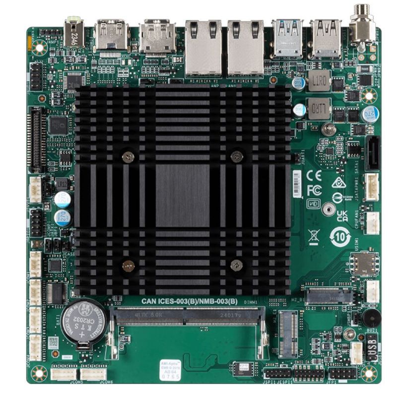 该 ITX 主板定位工业 利用,最多 支撑外接 3 台显示器,配有 2 个 2.5 GbE 网口, 支撑 Windows 和大 部分 GNU / Linux 发行版 。