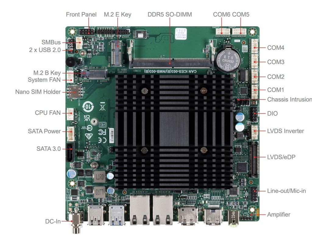 附上 MS-CF13 mini ITX 主板端口配置如下: