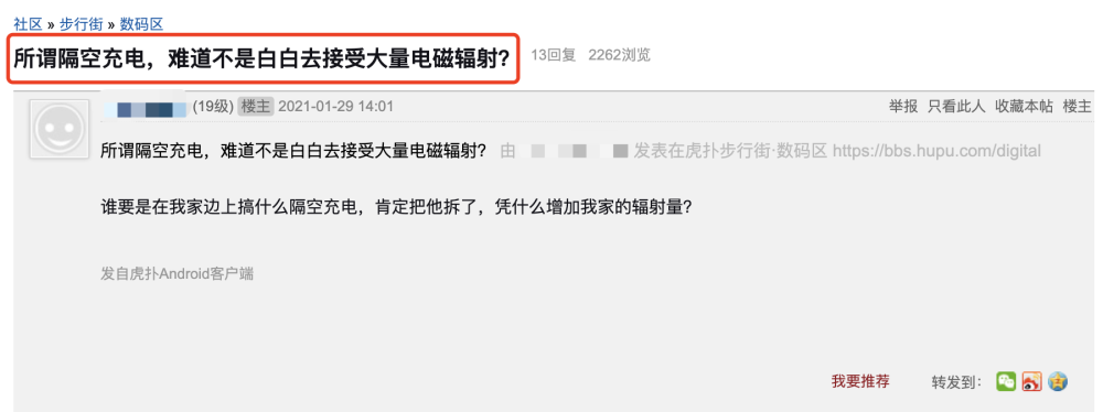 就在小米公布隔空充电技术的当天下午,虎扑上面就有人提出了有关辐射的质疑 。