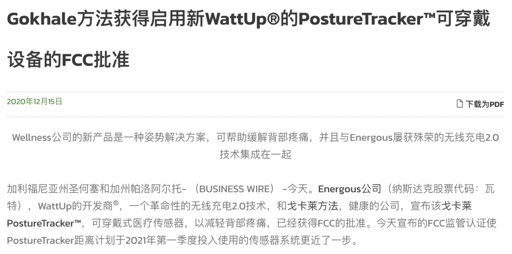 ▲ 一款缓解背部疼痛的 设施 使用了Energous 公司 有关技术, 获得 FCC 批准. 图片来自:Energous 官网
