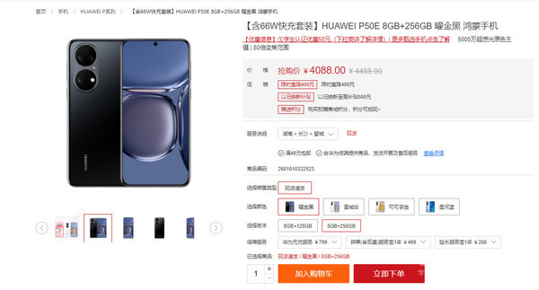 2988元起!华为P50E官方翻新版开售 支撑66W快充