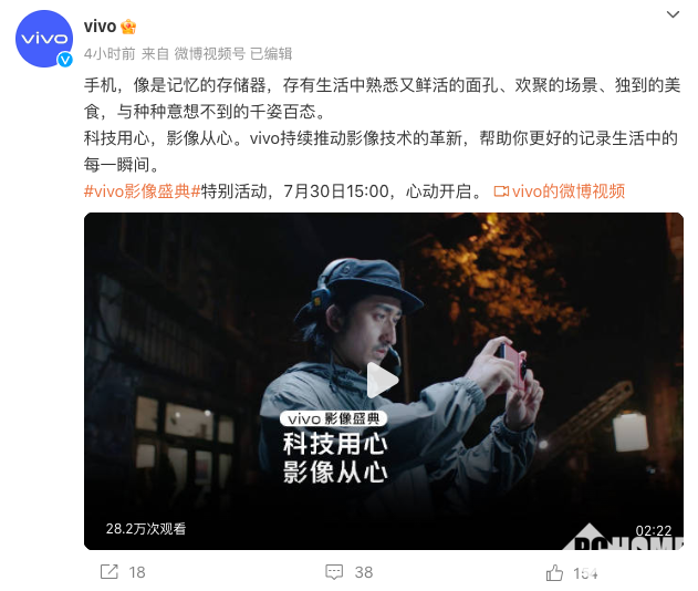 7月25日,vivo官方公布 信息称,vivo影像盛典特殊 运动将于2023年7月30日15:00“心动开启”,如无意外,此次特殊 运动上,我们将见到vivo自研影像芯片V3 。