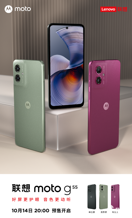 10月14日,崭新系列手机产品联想moto g55正式开启定金预售,10月21日现货开售 。其中,8GB+128GB版本报价1299元,8GB+256GB版本报价1399元 。