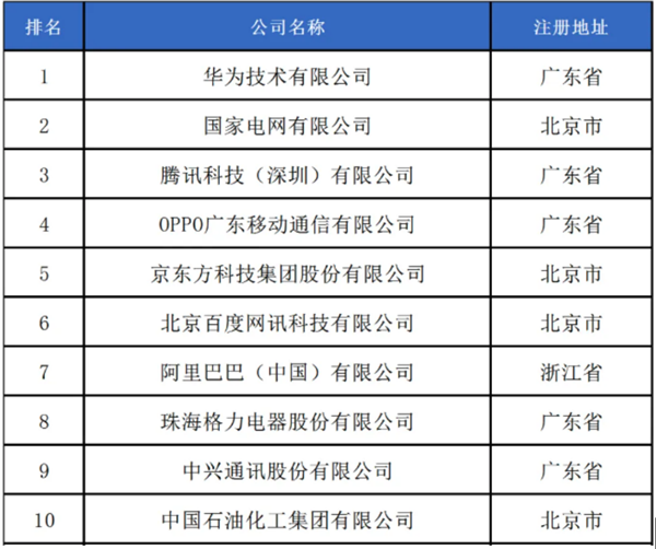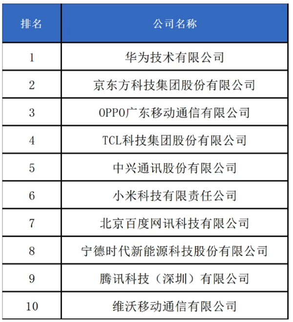 2024年度中国企业专利排行榜:华为第一 腾讯/OPPO进前五 |