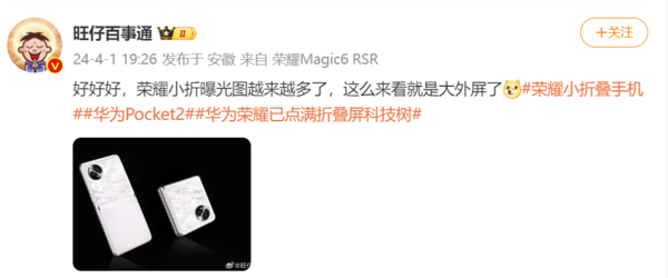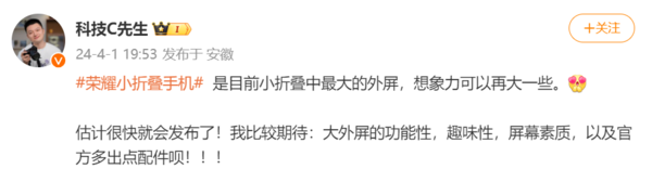 曝荣耀将发布最大外屏小折叠,有望引发行业变革 |