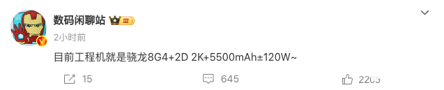 数码博主“数码闲聊站”爆料称,Redmi K80 Pro手机将搭载高通骁龙8 Gen 4移动平台,机身正面 占有直屏OLED屏幕,屏幕分辩率2K,内置5500mAh超大容量电池, 支撑120W快充 。