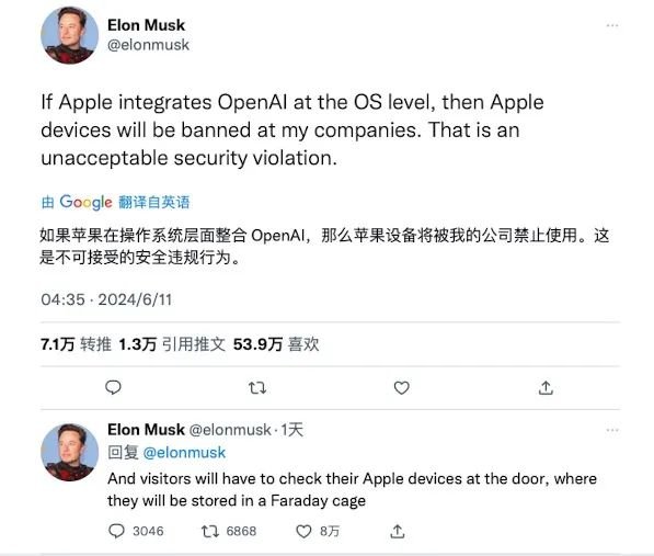 自打?WWDC上苹果与OpenAI合作,科技界顶流马斯克就坐不住了,开始高强度发推, 辽阔网友纷纷吃瓜 。