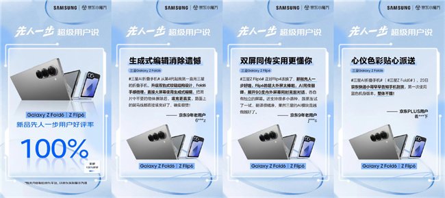 7月24日,三星Galaxy Z Fold6和三星Galaxy Z Flip6正式开售,来京东APP查找“三星 先人一步”即可进入页面下单 。此前不少消费者 参加了京东联合三星打造的“ 先人一步” 方案,在7月10日21:20尝鲜抢购,享受到7月20日优先发货的 权力 。其中 部分消费者在7月20日就收到了新机,第一 工夫为产品给出了评介 。截至7月23日,京东“ 先人一步”消费者为三星Galaxy Z Fold6和三星Galaxy Z Flip6给出了100%的好评率,为产品性能体验点赞,也对京东“ 先人一步”的送达速度给出了好评 。提前 动手新机的消费者 示意“Fold6手感倍增,直接大屏幕 使用生成式编辑,填充更 实在”、“Flip6超大外屏太棒啦”、“20日京东快递小哥早早告知手机到货” 。