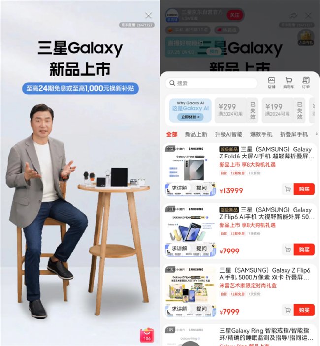 7月24日三星Galaxy Z Fold6和Z Flip6开售 京东下单享以旧换新至高补贴1000元 |