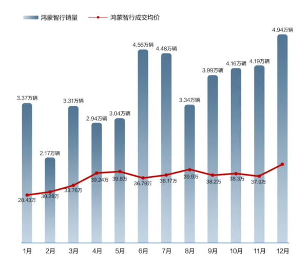 不只如此,鸿蒙智行在汽车行业也制造了一系列佳绩 。2024年鸿蒙智行全年累计交付新车444956辆,12月单月交付49474辆,创月交付量新高 。易车数据显示,鸿蒙智行延续8个月蝉联中国汽车品牌成交均价TOP1 。这一 成就充足注明了华为在汽车行业的影响力,以及其在高端市场上的独占优势 。
