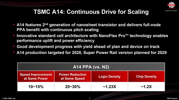 跟Intel拼了!台积电公布全新A14 1.4nm工艺:性能+15%、功耗-30% |