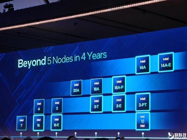 Intel代工在上一年2月份成立的时候, 宣告了自己的A14 1.4nm级工艺,业界首次采纳崭新的High NA EUV光刻机,估计2026年左右推出,届时又是 旗鼓相当 。