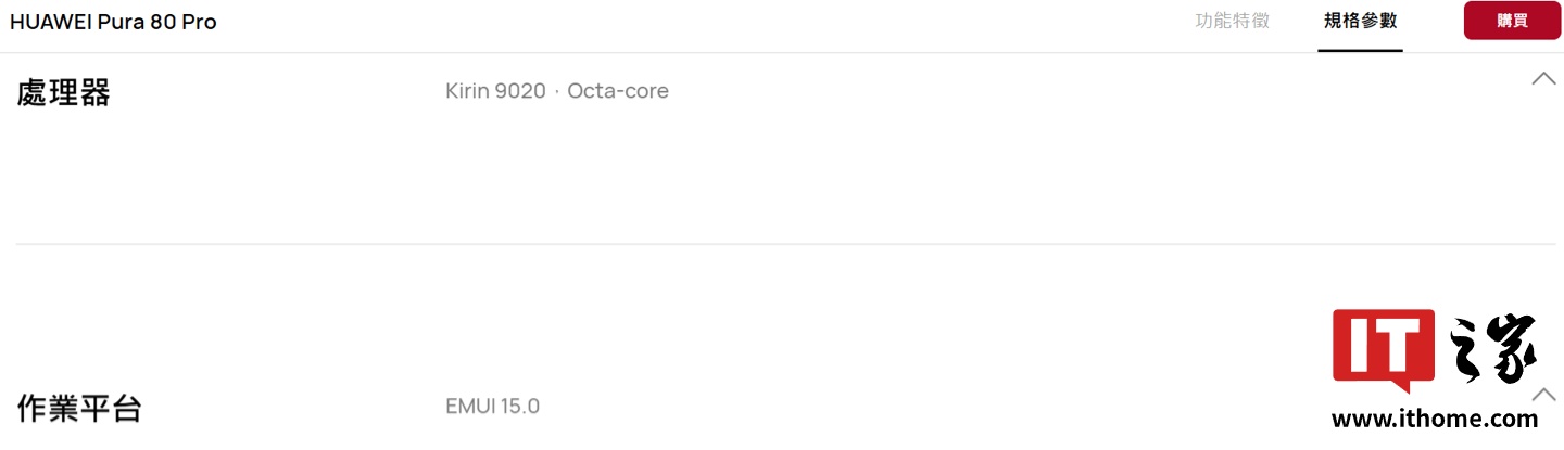留神到,华为香港官网显示,华为 Pura80 Pro 和 Pura80 Ultra 手机「港版」均搭载麒麟 9020 解决器,并预装 EMUI 15.0 系统 。当前国行版暂未公布 有关配 相信息 。